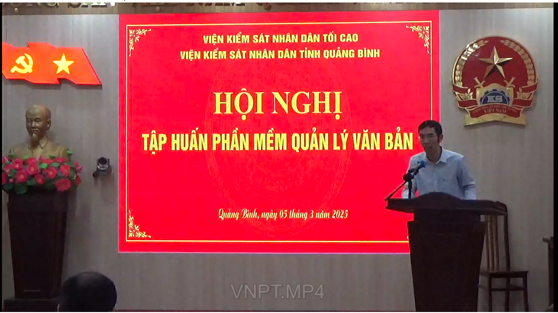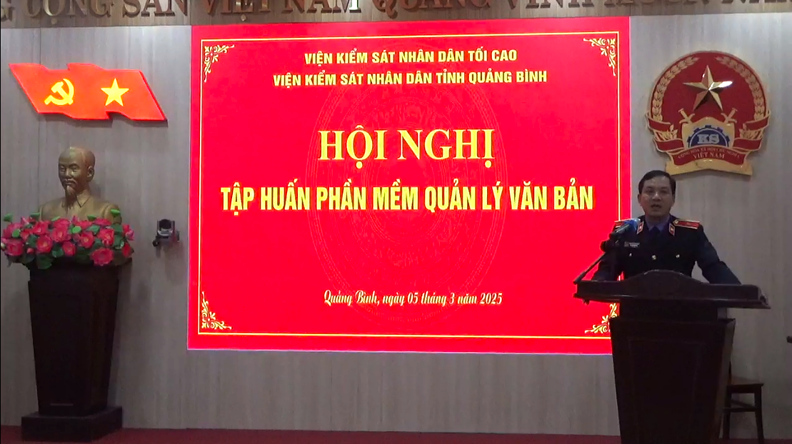Ngày 05/3/2025, Viện kiểm sát nhân dân tỉnh Quảng Bình tổ chức hội nghị tập huấn sử dụng phần mềm quản lý văn bản và điều hành cho toàn thể lãnh đạo, công chức Viện kiểm sát nhân dân (VKSND) hai cấp tỉnh Quảng Bình. Hội nghị tổ chức trực tiếp tại điểm cầu VKSND tỉnh và trực tuyến đến 08 điểm cầu VKSN cấp huyện.