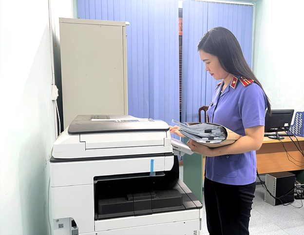 Thực hiện Chỉ thị số 01 ngày 12/12/2024 của Viện Kiểm sát nhân dân tối cao; Công văn số 334 ngày 24/4/2025 của VKSND tỉnh Quảng Bình về việc tăng cường ứng dụng công nghệ thông tin và chuyển đổi số, VKSND thị xã Ba Đồn đã chủ động triển khai nhiều giải pháp thiết thực, nổi bật là đẩy mạnh công tác số hóa hồ sơ tài liệu. Đơn vị đã sử dụng máy Photocopy RICOH IM5000 kết nối qua giao thức FTP Server, thiết lập tài khoản scan tự động, cho phép quét và gửi tài liệu trực tiếp về máy tính, giúp đơn giản hóa quy trình xử lý văn bản, hồ sơ nghiệp vụ.