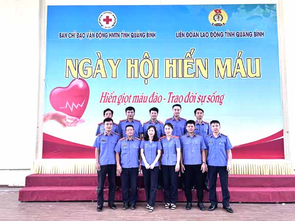 Công đoàn viên Viện kiểm sát nhân dân tỉnh Quảng Bình Để việc hiến máu tình nguyện trở thành một hành động cao đẹp, một việc làm thường xuyên. Công đoàn Viện kiểm sát nhân dân tỉnh Quảng Bình đã phát động 10 Công đoàn viên tham gia hiến máu