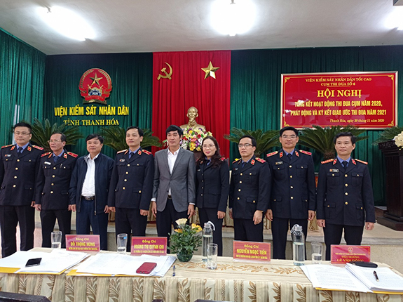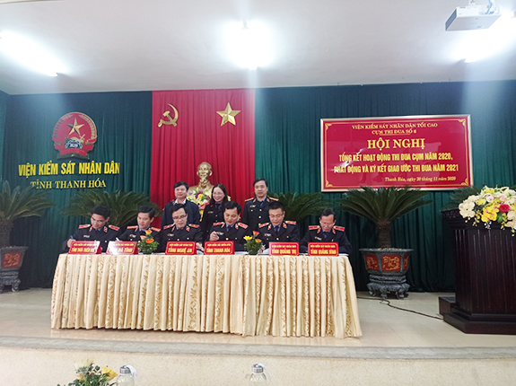 Các đơn vị ký giao ước thi đua năm 2021 Hội nghị đã tiến hành họp bình xét thi đua năm 2020. Đồng chí Lê Văn Đông, Viện trưởng VKSND tỉnh Thanh Hóa cụm trưởng chủ trì hội nghị.
