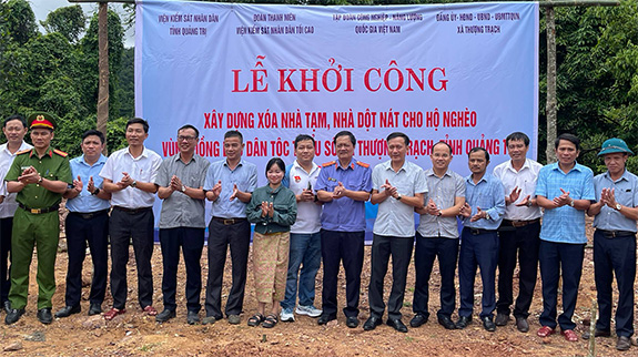 Sáng 15/7, Viện kiểm sát nhân dân (VKSND) tỉnh Quảng Trị phối hợp với Tập đoàn Công nghiệp - Năng lượng Quốc gia Việt Nam (PVN), Đảng ủy, UBND, UBMTTQVN xã Thượng Trạch tổ chức Lễ khởi công xây dựng xóa nhà tạm, nhà dột nát cho 30 hộ nghèo vùng đồng bào dân tộc thiểu số xã Thượng Trạch, tỉnh Quảng Trị.
