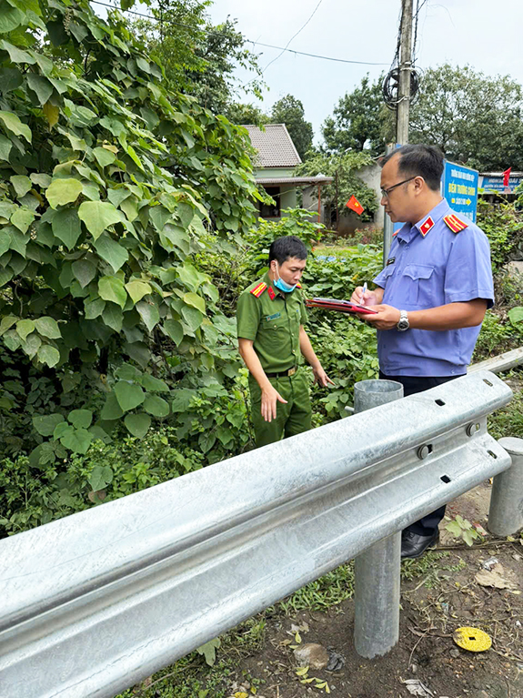 Kiểm sát viên thực hiện công tác kiểm sát việc khám nghiệm hiện trường