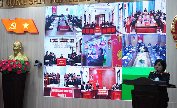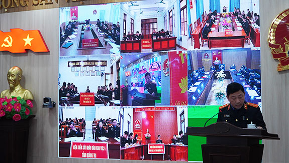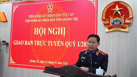 Toàn cảnh Hội nghị Sáng 23/01/2026, Viện kiểm sát nhân dân (VKSND) tỉnh Quảng Trị tổ chức Hội nghị giao ban công tác Kiểm sát Quý I năm 2026. Đồng chí Hồ Thanh Hải – Bí thư Đảng uỷ, Viện trưởng VKSND tỉnh Quảng Trị dự và chỉ đạo Hội nghị. Hội nghị được tổ chức tại VKSD tỉnh kết nối trực tuyến đến 08 điểm cầu VKSND khu vực. Tham dự Hội nghị tại VKSND tỉnh có các đồng chí Phó Viện trưởng VKSND tỉnh và toàn thể công chức VKSND tỉnh. Tham dự Hội nghị tại VKSND khu vực có toàn thể lãnh đạo, công chức VKSND khu vực.