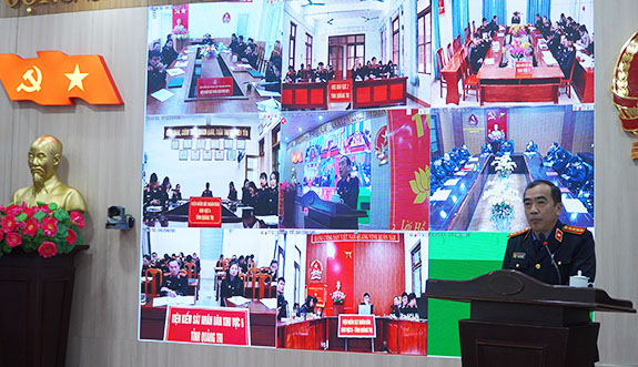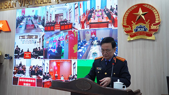Phát biểu chỉ đạo Hội nghị Tại Hội nghị, đồng chí Đoàn Công Minh, Chánh Văn phòng VKSND tỉnh Báo cáo về tình hình tội phạm và kết quả công tác Quý I năm 2026, phương hướng, nhiệm vụ công tác Quý I năm 2026 của VKSND tỉnh Quảng Trị. Báo cáo chỉ rõ tình hình an ninh, chính trị trong Quý I năm 2026 trên địa bàn cơ bản được bảo đảm; công tác đấu tranh phòng chống tội phạm, phòng chống tham nhũng, tiêu cực được thực hiện hiệu quả. Lãnh đạo VKSND tỉnh đã kịp thời xây dựng kế hoạch triển khai thực hiện Chỉ thị số 01/CT-VKSTC ngày 10/10/2025 Viện trưởng VKSND tối cao về công tác kiểm sát năm 2026 của ngành Kiểm sát nhân dân và Chỉ thị số 02/CT-VKSTC ngày 14/10/2025 của Viện trưởng VKSND tối cao về phát động phong trào thi đua yêu nước năm 2026 trong ngành Kiểm sát nhân dân. Các đơn vị trực thuộc VKSND tỉnh và VKSND các khu vực đã ban hành Chương trình, Kế hoạch triển khai công tác năm 2026 kịp thời theo chỉ đạo của Lãnh đạo VKSND tỉnh; có các giải pháp cụ thể, khả thi để nâng cao hiệu quả các khâu công tác; khắc phục khó khăn để thực hiện tốt chức năng, nhiệm vụ, hoàn thành chỉ tiêu công tác đã đề ra.