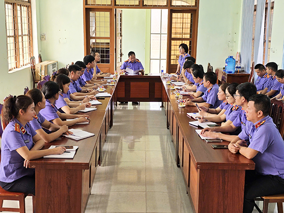 Toàn cảnh buổi làm việc Vừa qua, Đoàn kiểm tra của Viện kiểm sát nhân dân (VKSND) tỉnh Quảng Trị do đồng chí Cao Tiến Dũng, Phó Viện trưởng làm Trưởng đoàn đã có buổi làm việc tại VKSND khu vực 2 để kiểm tra việc chấp hành quy định của pháp luật, của Ngành trong công tác sắp xếp, tinh gọn tổ chức bộ máy.